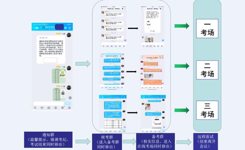 为了保证考试公平公正,教务处细化考试环节,做好保密措施。考官为临时抽调、临时组合,面试当天现场确定考场,上交手机,考官与考务人员签订诚信承诺书;考题通过随机抽题建立题库,面试中抽取过的题目直接移出题库,降低面试题目的重复率;考生面试流程要经过通知群、候考群、备考群(召集人独自设立)三个序列通道,进入在线考场,考生的顺序编号于17日考试当天早晨签到现场生成,使考生面试过程中始终保持单一通道。