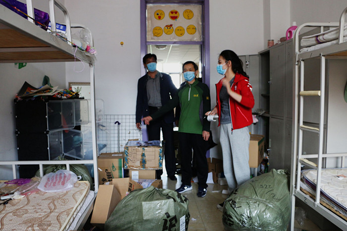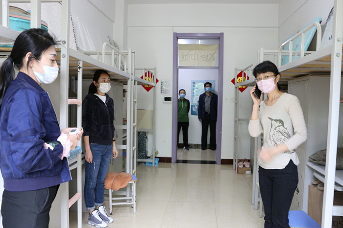 演练结束后,校学生处主管领导还到毕业班寝室问候正在为不返校学生打包的辅导员及物业工作人员,并了解此项工作进展。