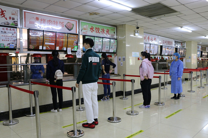 本次演练包括接校车送毕业生返校、学生进校测温核验、学生核酸检测组织、食堂分餐进食、寝室应急事件处理、学生论文指导等环节,并进行了全景模拟。