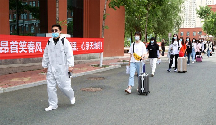 学生经扫描“龙江健康码”、“校园健康动态码”、入校测温、登记等环节入校,并在学校的组织下开展核酸检测。之后便按照“一人一寝”的要求自我隔离,等待核酸检测结果。