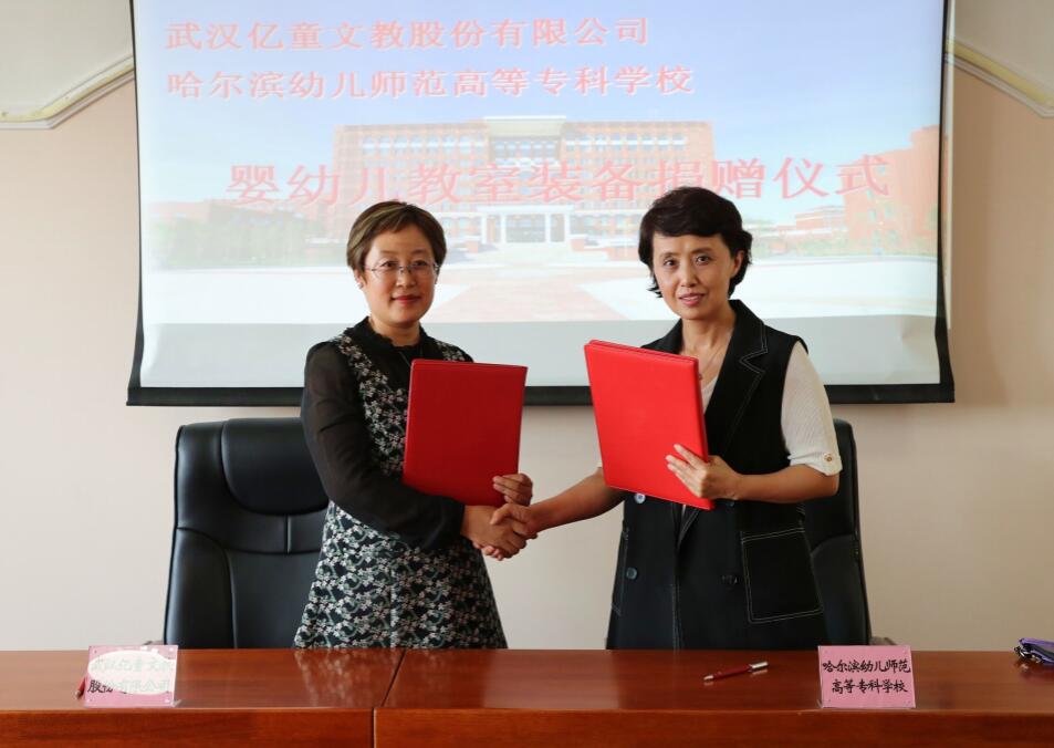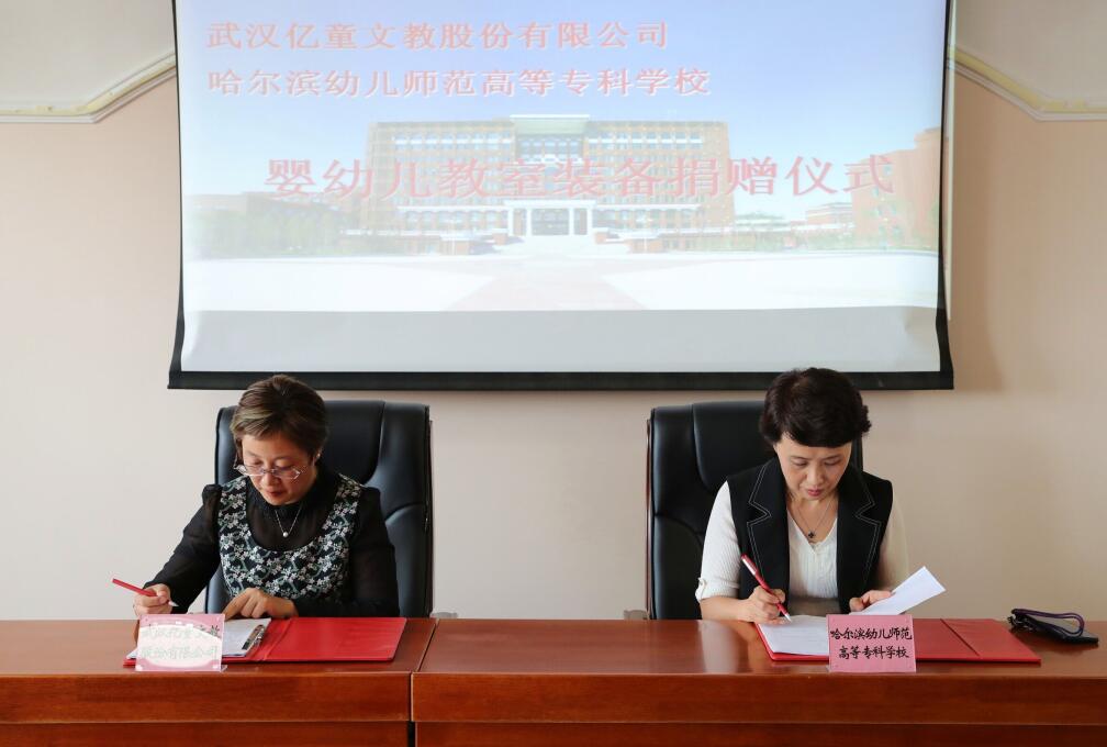 2020年9月1日上午12:30分,捐赠仪式在我校主楼832会议室隆重举行。副校长于立新、亿童哈市负责人李冬梅出席并签署捐赠协议书。