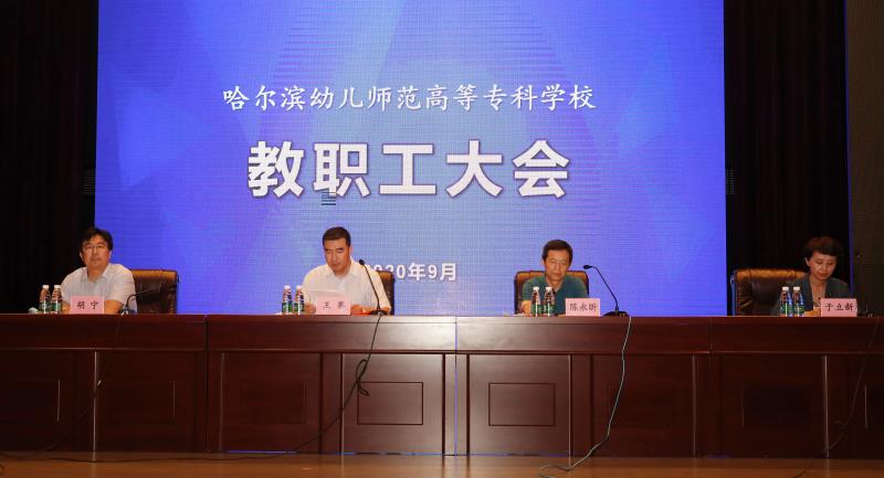 9月2日下午,学校在演艺中心召开了2020年秋季学期教职工大会,总结上学期工作,部署本学期及下一阶段工作。党委书记校长王骞、党委副书记陈永昕、副校长胡宁、副校长于立新及300余名教职员工参加会议。会议由党委副书记陈永昕主持,党委书记、校长王骞讲话。