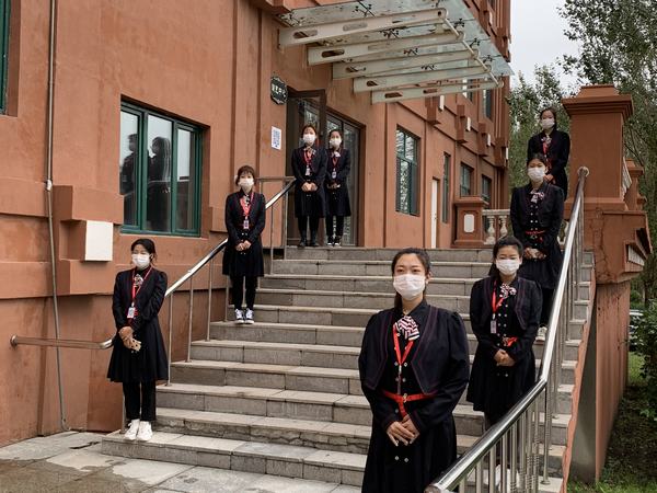 9月10日,艺术系学生会举行庆祝教师节活动,学生会主席王迪与副主席李蕙带领学生会全体成员精心制做教师节送祝福视频链接,为学生会的老师们准备了爱心贺卡,同时学生们还为艺术楼的办公室门上贴上暖心的小贴纸。今天一早,同学们就穿戴整齐,按照队形站在艺术楼门口欢迎即将到来的老师们。