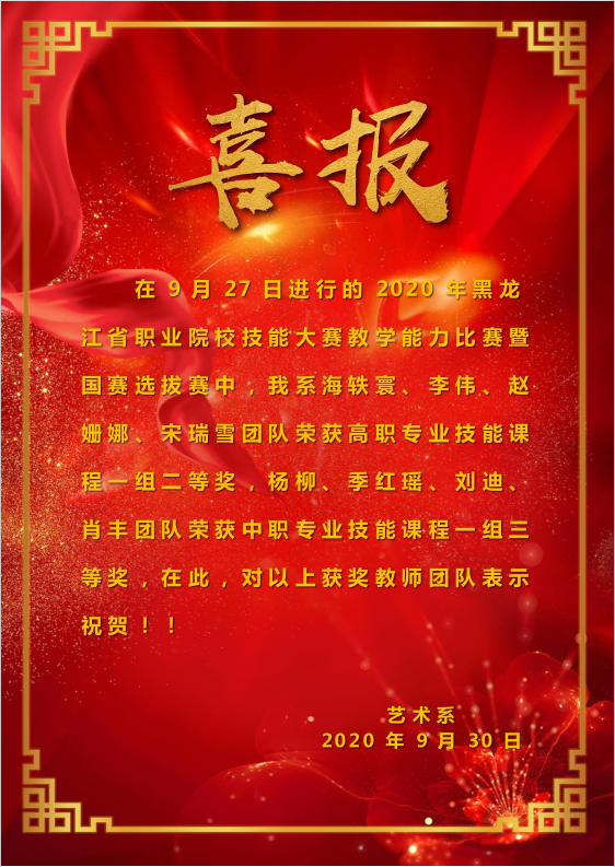 艺术系海轶寰、杨柳教师团队参加2020年黑龙江省职业院校技能大赛教学能力比赛暨国赛选拔赛获优异成绩