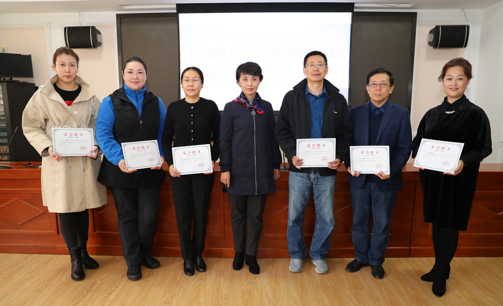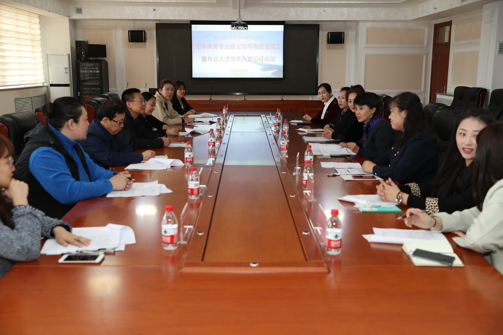 2020年10月9日上午9:30, 哈幼专现代服务系召开成立空乘专业建设指导委员会暨专业人才培养方案论证会议。会议主要目的是为了提高办学水平,加快专业发展,进一步精准定位人才培养方向和专业课程设置,使学生更快、更好的适应企业需求。参加会议的委员会专家有:黑龙江博观投资有限公司总经理李文,黑龙江省机场管理集团有限公司旅客服务部党委书记李倩竹,中国南方航空股份有限公司黑龙江分公司人力资源部招聘/招飞主管贾媛姝,黑龙江职业学院旅游与人文艺术学院副院长李勇民,黑龙江博观投资有限公司培训部主任郭瑛。参加会议的还有哈幼专副校长于立新,现代服务系副主任郭勇慧,现代服务系业务主管刘倩及现代服务系全体教师。会议由现代服务系空乘教研室主任钟宏杰主持。