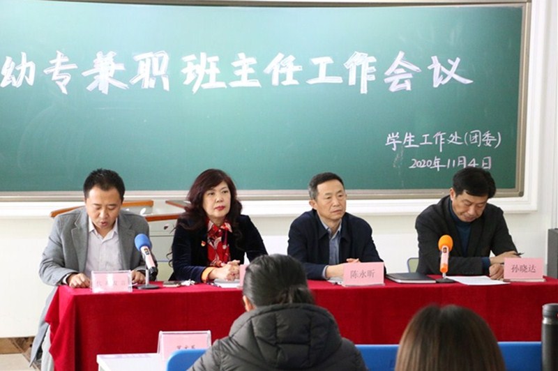 11月4日,我校召开2020年兼职班主任工作会议。党委副书记陈永昕、学生工作主管领导周杰以及各系学工负责人出席会议。2020年新任兼职班主任、2019、2020级全体辅导员参加会议。会议由学生处(团委)处长孙晓达主持。