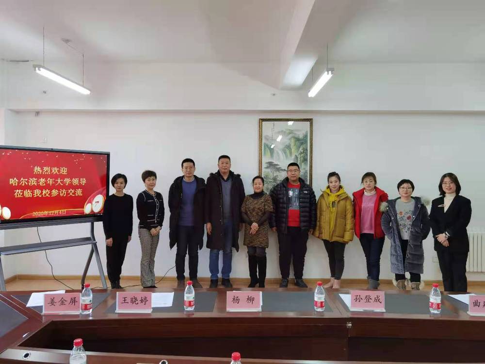 2020年12月4日,哈尔滨老年大学教务处处长孙登成及教研室负责人等一行来我校参观交流。我校基础教育部副主任刘珂、艺术系业务主管邢琳、舞蹈教研室教师安然、教务处兼职干事周博等人热情接待了来访嘉宾。