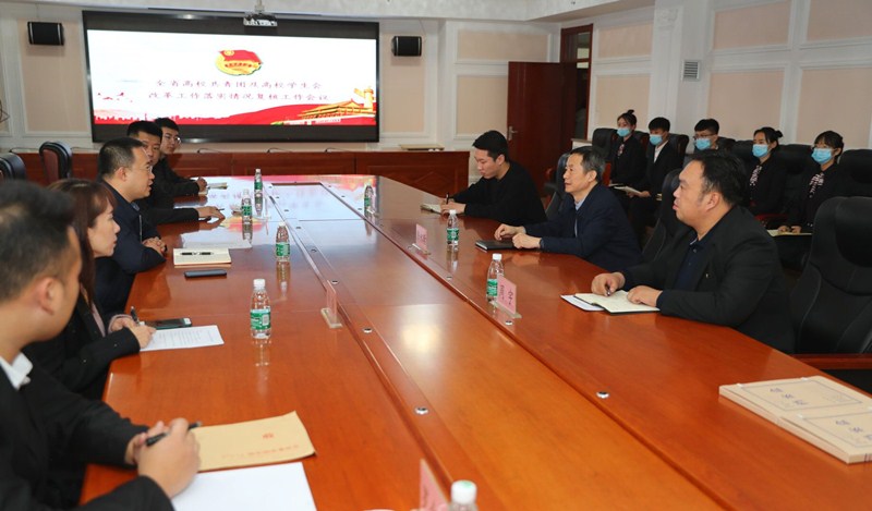 校团委负责人周宇从制定我校共青团、学生会改革实施方案、改革健全基层组织制度、改革创新工作方式方法、改革团干部选用培养制度、改革强化保障机制、青年大学习网上主题团课学习情况以及对共青团改革和学生会改革的建议等方面向调研组进行了汇报。校团委干事许盛循对我校在推进共青团工作过程中存在的困难和需要上级团组织解决的问题进行了汇报。