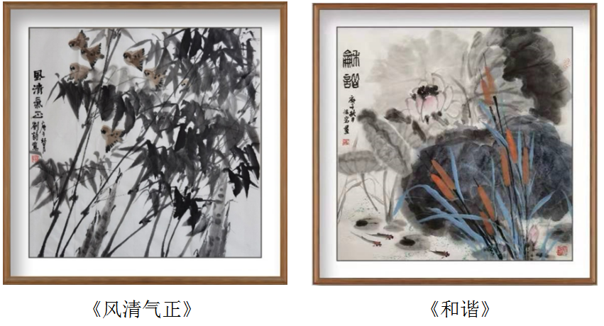 国画参赛作品中,范永兵老师指导的刘诗意同学画的竹子《风清气正》笔墨运用合理,打破传统构图习惯,以满构图呈现,气运生动,体现了竹子的品格,借喻当今我国社会在以习近平新时代中国特色社会主义的社会风气,获得二等奖的好成绩!范永兵老师指导的徐岩同学的大写意荷花以“和谐”为主题,借喻人民生活和谐幸福,带给人们的不仅仅是画面的唯美意境,更是心灵的享受。获得绘画作品类三等奖好成绩!写意花鸟画是中国画艺术之一,大写意花鸟画更是运用笔墨传达一种精神。