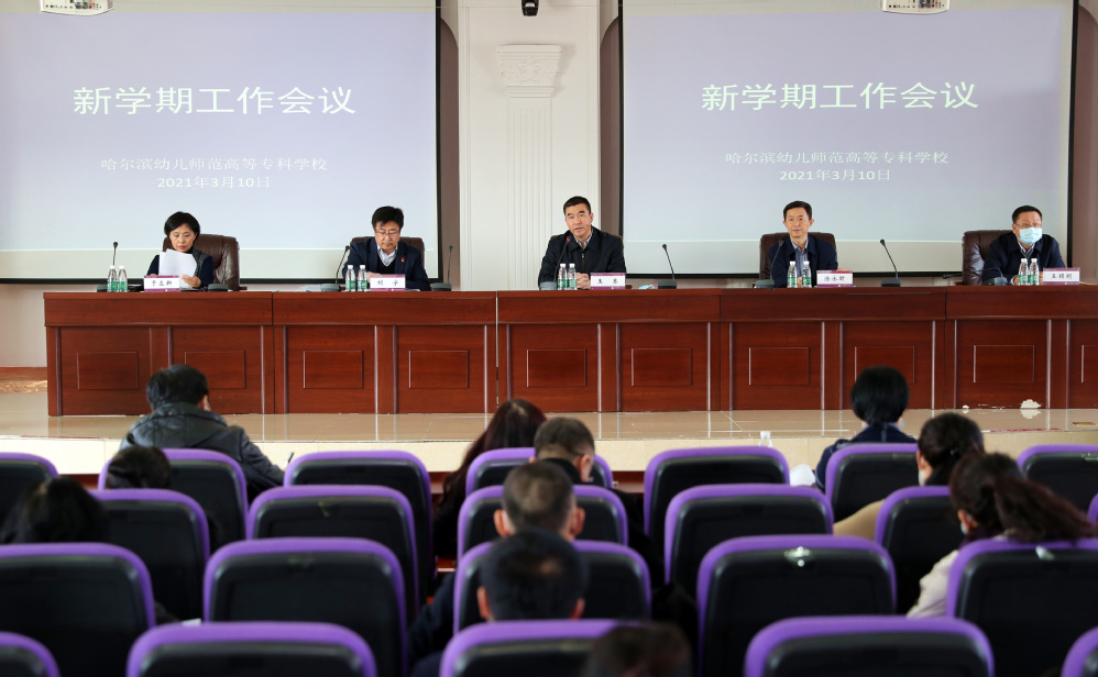 3月10日下午,哈幼专2021年春季学期工作会议在图书馆学术报告厅召开,学校领导、处级干部、科级干部、教研室主任等近70人出席了会议。校党委书记、校长王骞发表了讲话,副校长胡宁对开学阶段的疫情防控工作进行了部署。党委副书记陈永昕主持会议。