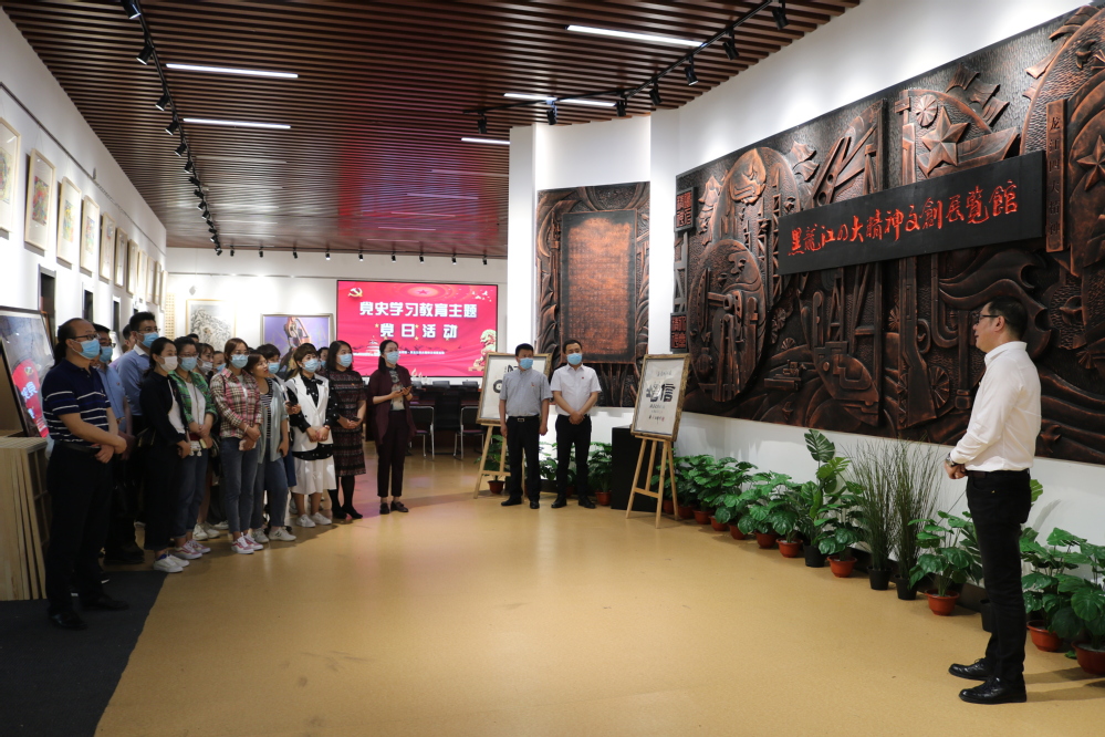 为深入推进党史学习教育,弘扬龙江四大精神,6月11日下午,我校组织党务干部来到哈尔滨学院参观黑龙江四大精神文创展览馆。