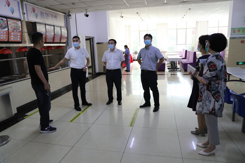 校领导首先对校门管控、学生返校演练等疫情防控措施进行了检查,王骞书记要求各部门务必要把开学疫情防控各项措施落实到位,做到防患于未然、防疫于阵前、防疫于主动,确保校园疫情防控绝对安全。