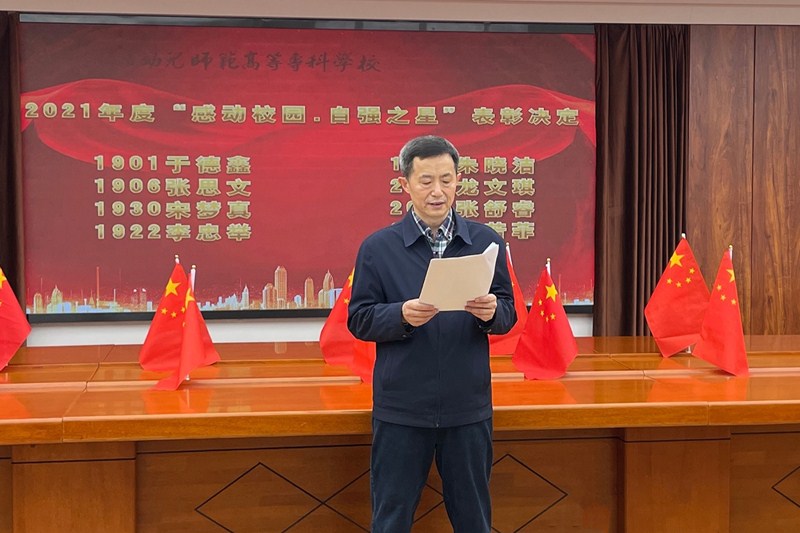 陈永昕书记宣读了表彰决定,为获奖同学颁奖并作了讲话。他指出,自强是一种品格,更是一种文化,要让自强不息的精神成为哈幼专健康校园文化的重要组成部分。他希望我校广大师生无论身处顺境还是逆境,都能勤奋努力,奋勇向前。他鼓励广大师生要坚定梦想,克服困难、积极进取,营造昂扬向上的校园氛围,以促进我校学生综合素质与精神素养全面提升。他强调,学校的发展取决于其所培养的人才的质量,全体师生要坚持“人本、法治、求是”的办学理念,为实现中华民族伟大的“中国梦”而不懈奋斗。
