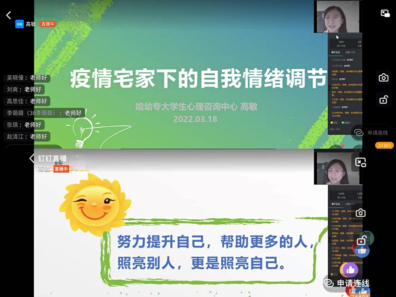为关爱师生疫情防控期间身心健康,普及心理知识,做好情绪疏导,校心理健康教育中心举办了以“疫情宅家下的自我情绪调节”为主题的线上讲座。