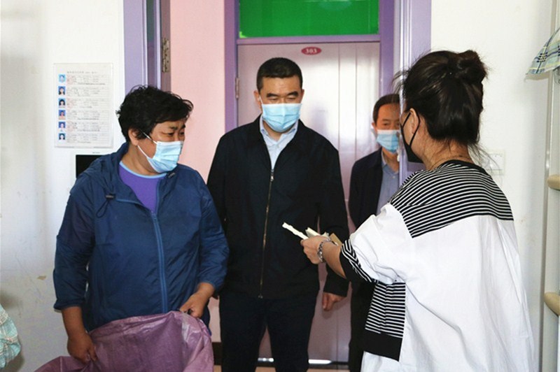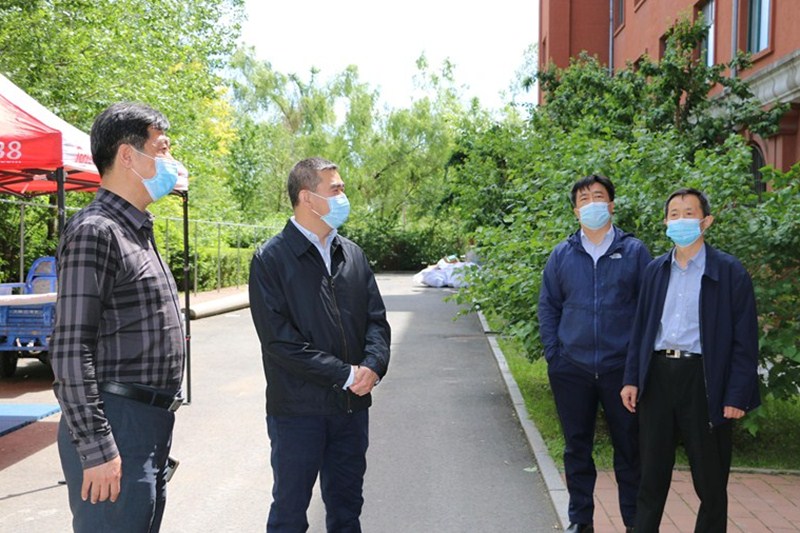 校领导们在寝室还查看了毕业生行李打包邮寄、寝室卫生防疫等情况,并与现场协助学生打包的幼儿教育系主任肖向夷、副主任宋丹、全体辅导员,快递公司员工亲切交谈,详细询问了工作中遇到的困难和问题。