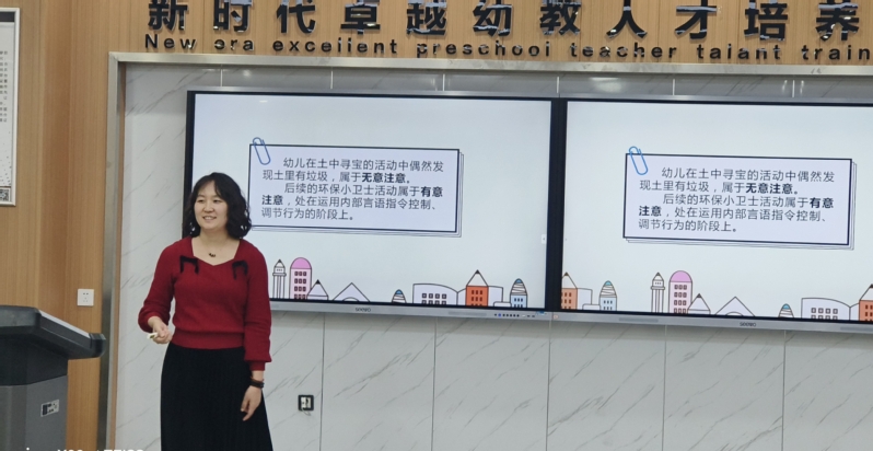 省级青年教学名师宋丽博示以《学前心理学》课程为例,完整的展示出《学前儿童注意的发生与发展》这节课程的授课模式,包括课前的学情调查、课程的导入、课中的交流互动、课后的总结答疑等,体现出宋老师对课堂各个环节的精心设计以及对如何激发学生学习主动性的探索实践。
