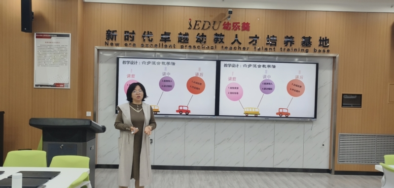 省级教学名师周艳霞老师示范课程为《学前教育学——第三章第二节幼儿园教育的特殊原则》,周老师首先阐释了本节课程的教学设计,并在课程讲授中呈现出六步混合教学法的应用。整堂课程教学目标明确、教学重点突出、教学环节层层相扣,充分体现出以学生为主体、教师为主导的教育理念。最后周老师对新教师给予了殷切嘱托,“教学之路,不断探索前行”,希望新教师能够在讲台上实现追求、实现梦想、实现幸福感和获得感。