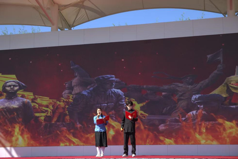 活动伊始,歌曲《我爱你中国》表演拉开序幕,真挚的歌声搭配激昂的旋律,将师生对祖国的热爱与祝福融入每一个音符,现场氛围迅速升温;配乐朗诵《不朽的抗战》将爱国主义电影片段与深情的诵读相呼应,带领师生重温抗战岁月,缅怀革命先辈的无畏精神;随后,全体人员共同观看九三阅兵式,整齐的受阅方阵、先进的国防装备,直观展现了国家的强大实力,让在场师生倍感振奋,民族自豪感油然而生;观看阅兵式后,校广播站表演配乐朗诵《奋进的中国》,以铿锵有力的语言,回顾祖国从站起来、富起来到强起来的发展历程,歌颂新时代的辉煌成就,引发师生强烈共鸣;活动最后,校学生干部代表共同合唱《歌唱祖国》,嘹亮的歌声响彻校园,将活动氛围推向高潮,也为本次主题活动画上圆满句号。