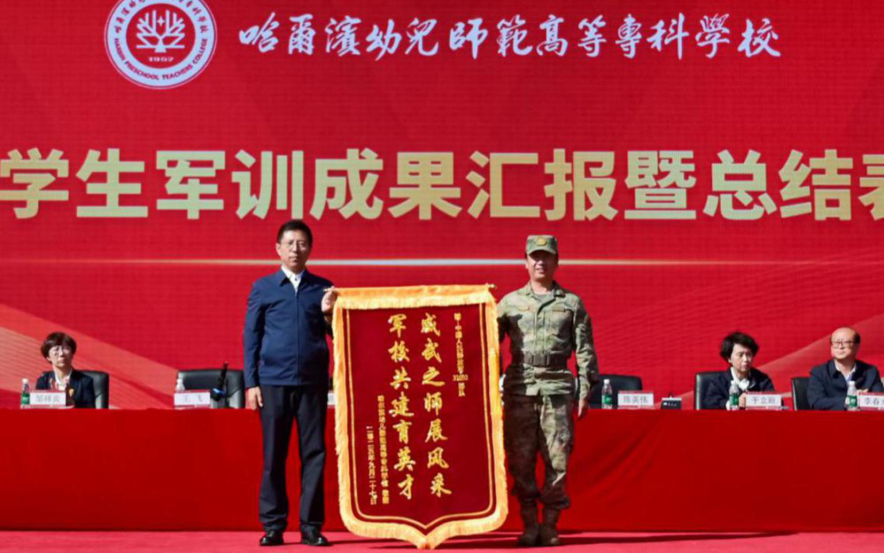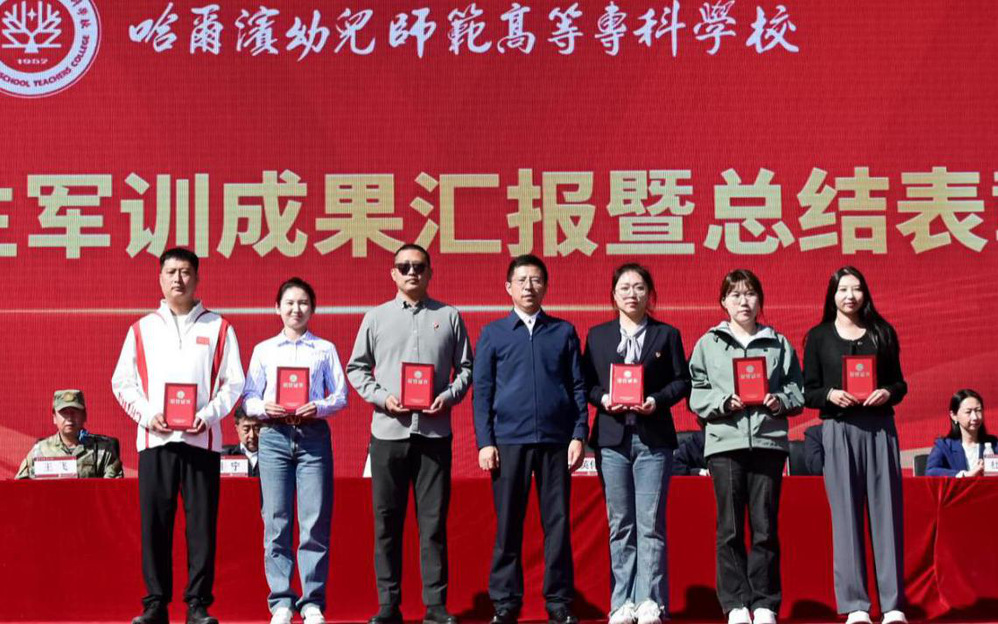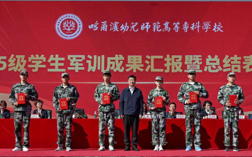 会上,学校党委副书记陈英伟宣读了《哈幼专军训团关于表彰2025级新生军训先进集体和个人的决定》,共表彰了军训优秀模拟营1个、优秀连队5个、优秀教官6名、优秀指导员6名、优秀学兵128名、优秀内务标兵116名。学校党委书记陈威、副书记陈英伟、副校长胡宁、副校长于立新及承训部队领导分别向获得表彰的先进集体和优秀个人颁发了获奖证书。