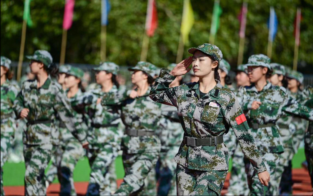 雄壮的《中国人民解放军军歌》响起,全体同学及教官合唱军歌目送军训团团旗离场。