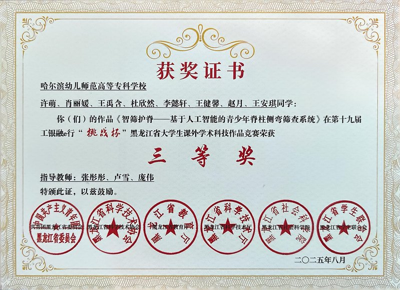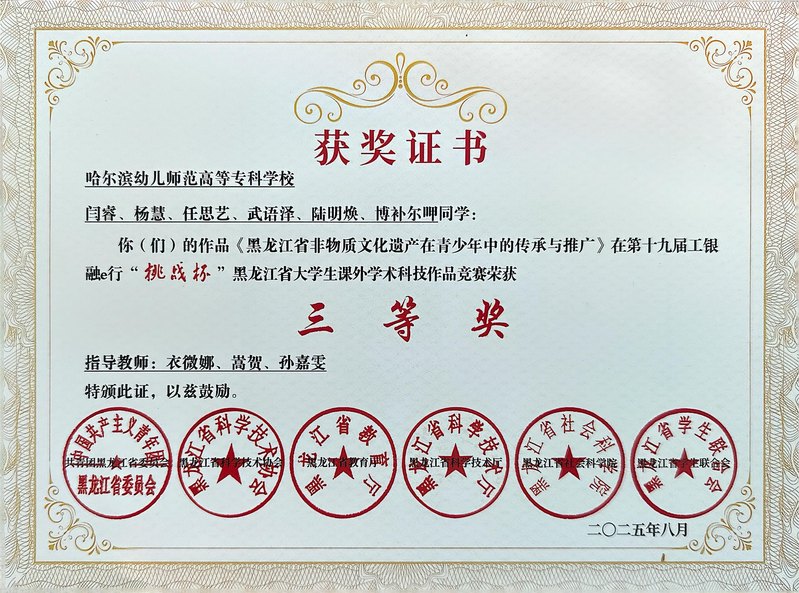 近日,由共青团黑龙江省委员会、省科协、省教育厅等单位联合主办的第十九届工银融e行“挑战杯”黑龙江省大学生课外学术科技作品竞赛结果揭晓,我校报送的两部作品凭借扎实的研究基础和创新实践,从全省67所高校的1万余件参赛作品中脱颖而出,双双荣获省级三等奖,展现了我校学子在科技创新与教育实践融合领域的探索成果。
