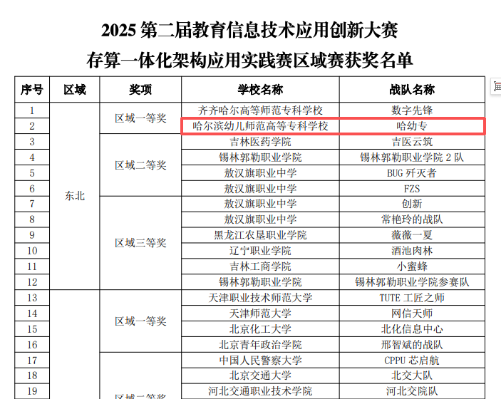 近日,由中国教育技术协会主办的2025第二届教育信息技术应用创新大赛区域赛成绩揭晓。我校信息与教育技术中心的杨河圆、白晶宇老师在“存算一体化架构应用实践赛”中荣获东北赛区一等奖,成功晋级全国总决赛。
