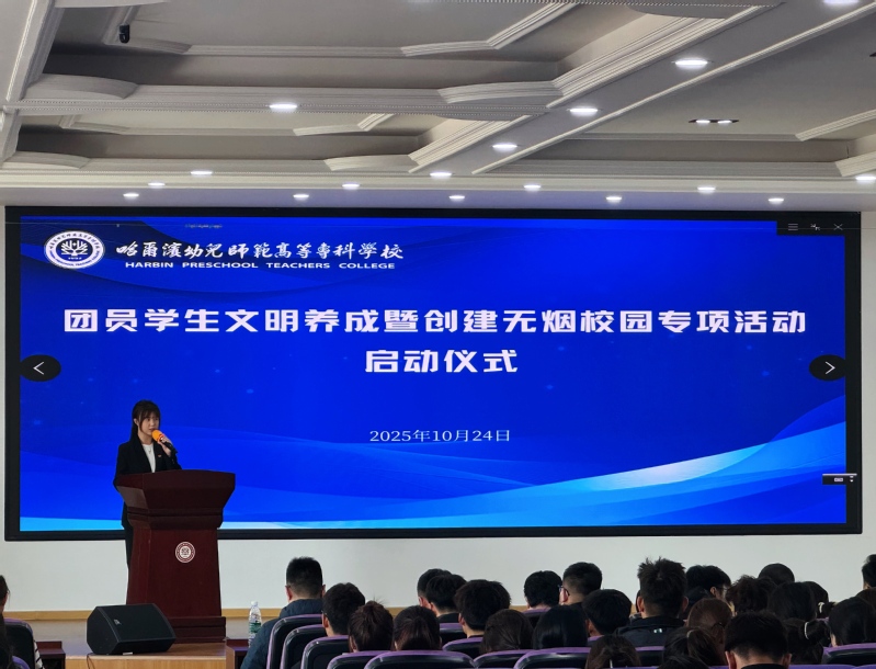 团委刘思彤传达《哈幼专团员学生文明养成暨创建无烟校园专项活动方案》。此次活动以“涵养文明新风 共建无烟校园”为主题,覆盖全体在校学生,活动时间持续至本学期末。活动围绕“健康校园”“文明言行”“学风提质”三大专项行动展开,旨在通过“知行合一”的实践路径,倡导校园控烟行动,进一步杜绝校园不文明现象,夯实优良校风学风,赋能学生成长成才。