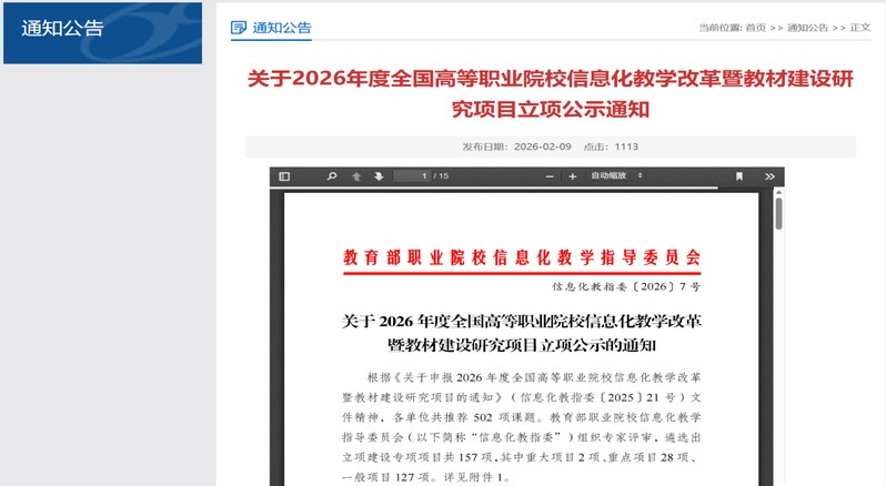 项目获批将有力支撑我校双高计划信息化教材建设,推动信息技术与课程教学、教材开发、实训实践深度融合,助力优质教学资源建设与教学模式创新,提升人才培养数字化水平。此次重点项目获批,是对我校老师潜心研究、扎实治学的充分肯定,更为学校深化职业教育教学改革、推进转型注入新动能。