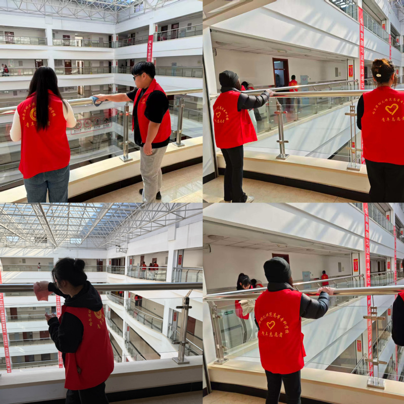 活动前期,校青年志愿者协会精心筹备、周密部署,明确清扫区域、细化分工安排,对参与活动的志愿者进行岗前培训,强调服务规范与细节要求,确保志愿服务高效有序、贴心到位。活动当天,志愿者们准时集结、整装待发,大家身着统一志愿服装,手持扫帚、抹布、拖把、垃圾袋等清洁工具,以饱满的热情投入到志愿服务中,充分展现了我校青年学子昂扬向上、乐于奉献的精神风貌。