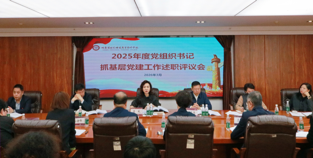 3月25日,学校召开2025年度党组织书记抓基层党建工作述职评议会。学校党委班子成员出席会议,各党总支及直属党支部书记副书记,各党支部书记、校院二级组织员、各二级单位负责人、群众代表等参加会议。市委教育工委学前教育处处长、一级调研员李文慧到会指导。会议由党委副书记陈英伟主持,党委书记陈威作讲话,并提出工作要求。