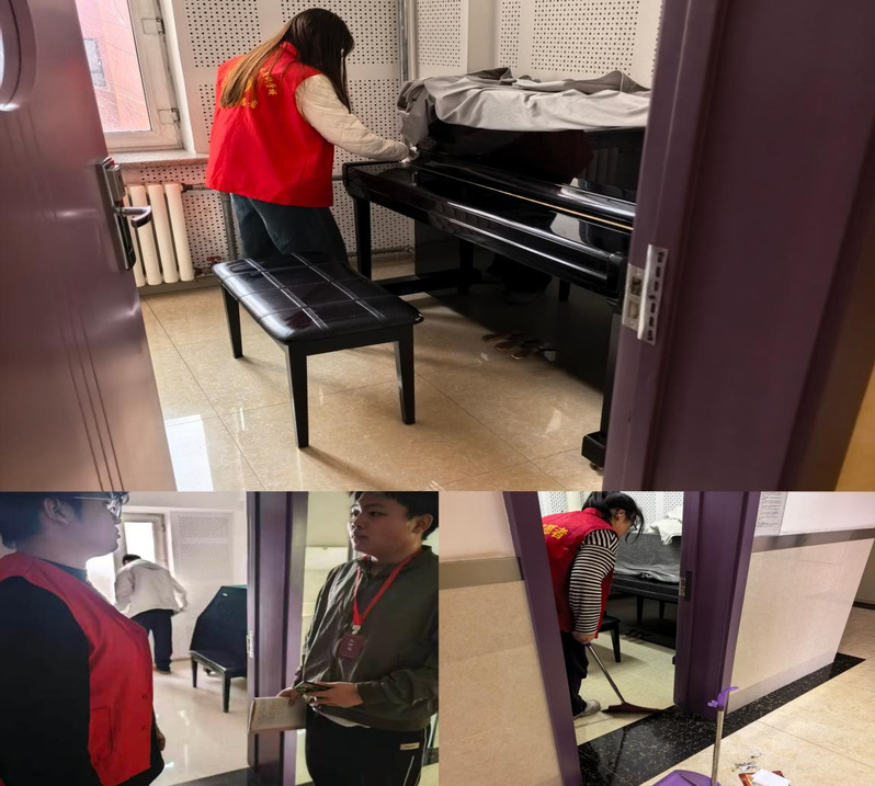 艺术学院团总支结合专业实际开展琴房清洁志愿活动,学子分工协作,细致擦拭钢琴、规整乐谱,擦洗门窗玻璃。同学们以默默付出的实干行动诠释雷锋精神,为校园打造了整洁温馨的艺术学习环境。