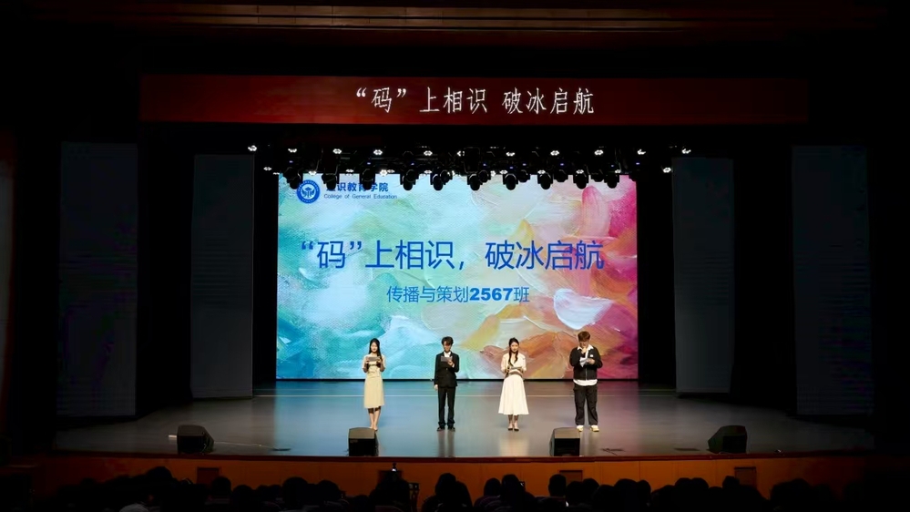 为助力2025级新生快速融入大学集体、增强班级凝聚力、深化专业认知,9月15日下午13时,通识教育学院于校演艺中心隆重举办以“‘码’上相识 破冰起航”为主题的班团建设活动。学院领导、教师代表及全体新生共同参与了集体仪式,活动现场气氛热烈、青春洋溢。