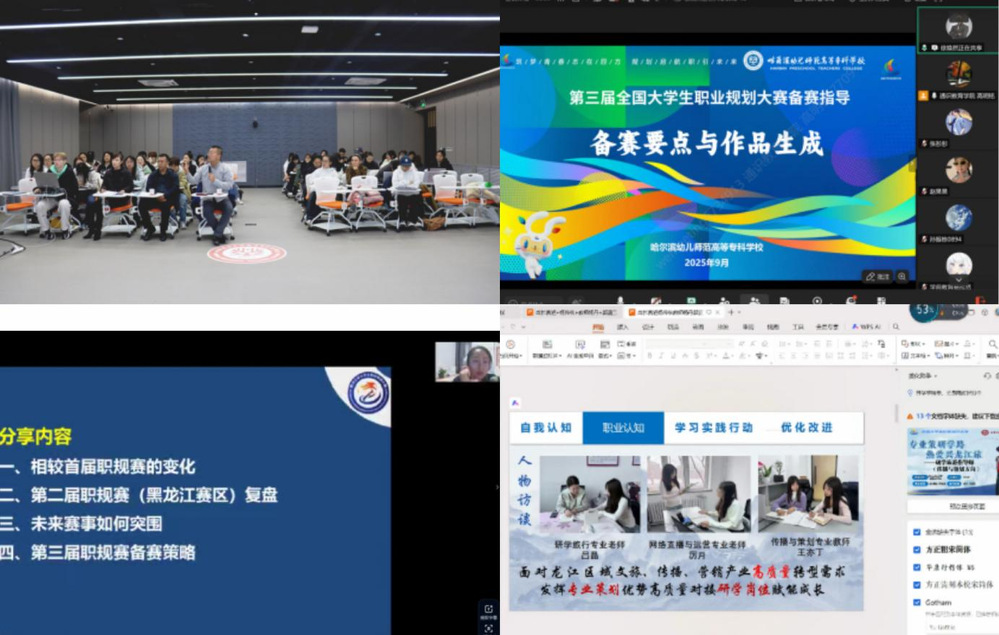 大赛历时5个月7月,学校创新创业指导中心邀请黑龙江省大学生就业创业指导中心就业创业服务部副部长王,解读赛事发展新趋势。9月,邀请教育部高级职业指导师徐焕然从评委视角对本届大赛不同赛道的差异化评审标准详细进行了解读10月,在未来教育创新中心举办职规赛训练营活动,邀请肖激光等专家为35入围校赛选手一对一专项指导。11月举行校赛决赛,选手通过陈述与答辩展示生涯发展规划与就业能力,经校外专家多维度评审,最终6人凭借清晰扎实的职业规划能力获得省赛资格。