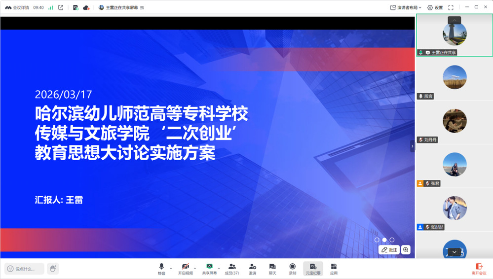 为深入贯彻学校党委“二次创业 教育思想大讨论”工作部署,紧扣学校“师范立校、非师强校”办学定位与升本攻坚核心任务,3月17日19时,传媒与文旅学院通过腾讯会议线上召开“二次创业 教育思想大讨论”启动会,学院全体教职工参会,正式拉开学院大讨论活动序幕。