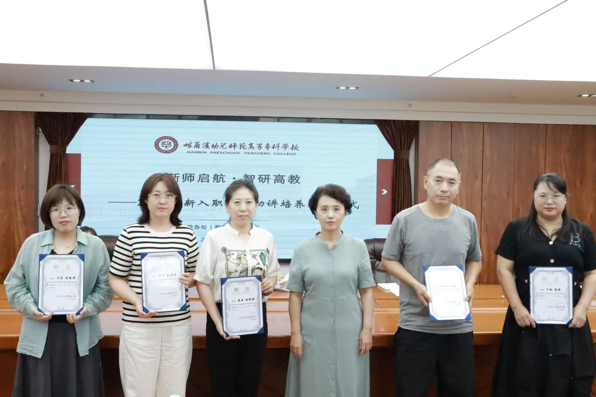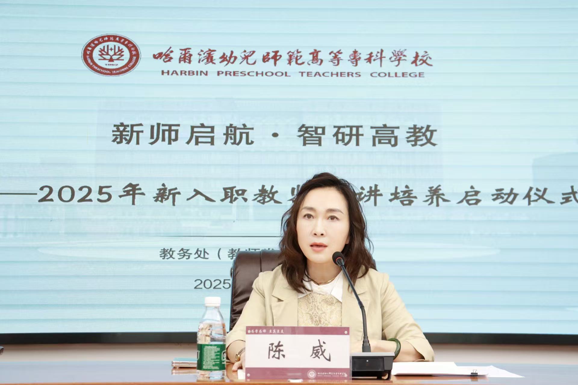 陈威强调,学校要对青年教师的成长和发展尽可能的提供机会和支持,希望新教师能尽快转变角色、融入集体,以奋斗者的姿态与学校同频共振,在教书育人的实践中实现个人理想与学校发展的双向成就。并对新入职教师提出四点要求:一是崇德敬业 做有德行之人 “大学之道,在明明德,在亲民,在止于至善。”“善为师者,既美其道,又慎其行”,教师要注重自身的修养,树立正确的人生观、世界观和主流价值观,做到崇德敬业、以身立教、为人师表,行为示范。二是崇尚专业 做有底气之人 “学高为师,身正为范”,青年教师要秉承大学优良传统,要崇尚学术、崇尚专业、献身学术、献身专业,把教育教学作为最崇高和最伟大的事业来做,把人才培养专业化作为最基本的任务,把优质教育教学成绩作为为师之道的最高追求。不断锤炼专业素养,潜心钻研教书育人和实践工作之道,获得实践智慧,形成优良的实践品质,做一个在职业生涯发展中有底气的人。三是追求卓越 做有志向之人 要具备明确志向和目标,要锤炼坚定的意志和不屈不挠的精神,勇于走出舒适圈,挑战自我,面对挫折和失败,保持坚定自信和积极乐观的心态,用正能量保持定力,保持恒心,让追求卓越成为一种习惯和人生的境界。四是爱校荣校 做有担当之人 希望青年教师继承幼专优良传统,乐于奉献,严谨治学,崇尚学术,追求真理,以良好的精神风范为引领,筑牢成长的价值根基,以高品质教学为抓手,夯实成长的能力底座,以高质量研究为支撑,拓宽成长的视野边界。同时提出三点期望:希望青年教师要快速融入学校发展建设,爱校感恩,满怀希望,以感情、责任与使命开展工作;要勇于担当、埋头实干,跟上学校跨越式高质量发展步伐;要不负众望与重任,创造实在业绩,让哈幼专成为事业舞台与精神家园。