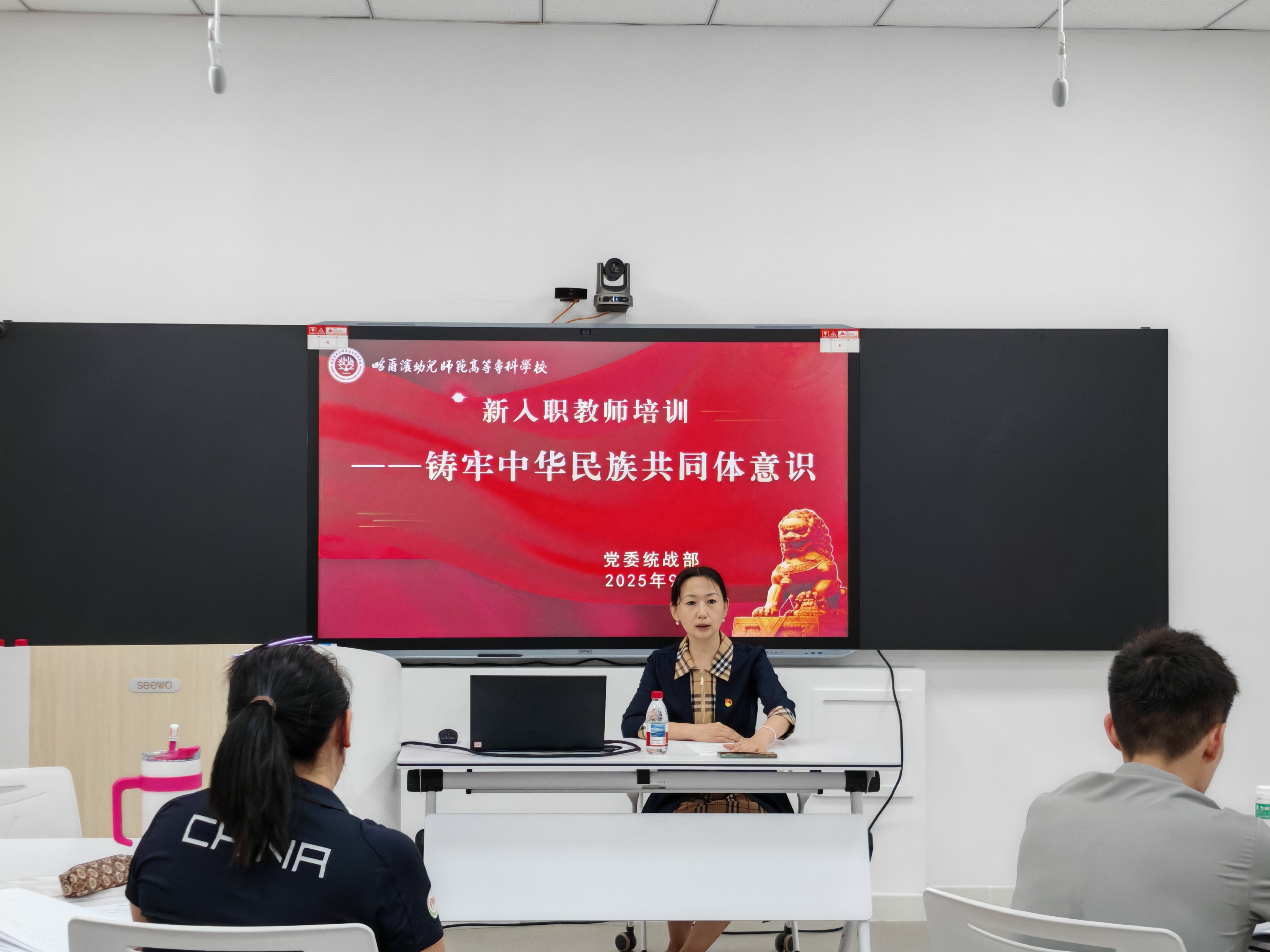 93日下午,统战部部长杜丹丹与新入职教师共同学习铸牢中华民族共同体意识的课程。助力新入职教师进一步了解铸牢中华民族共同体意识的内涵,在实践中引导学生树立正确的民族观、国家观,为民族复兴贡献教育力量。