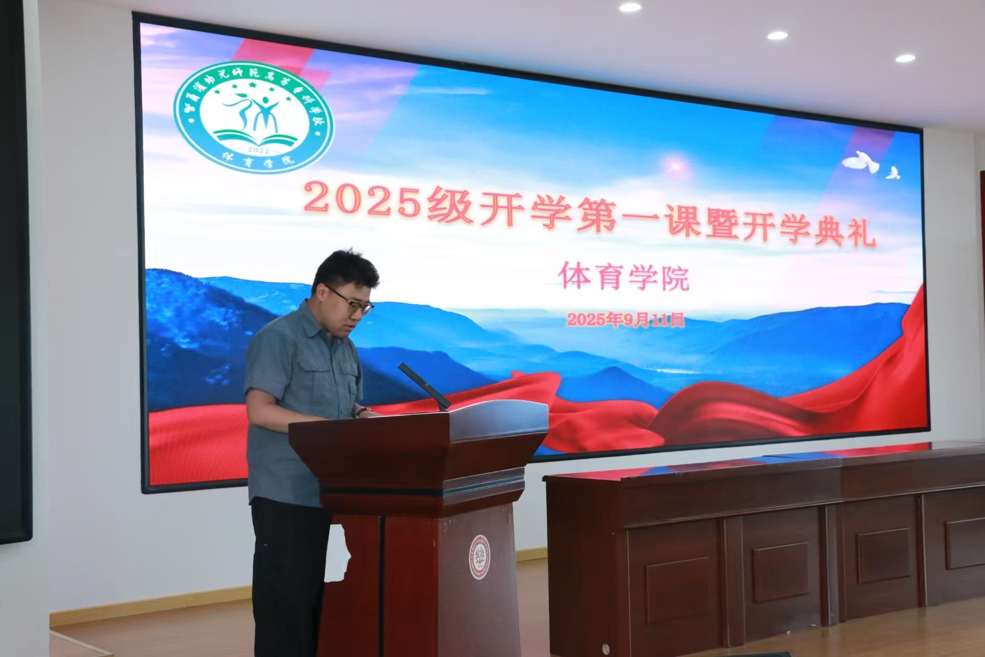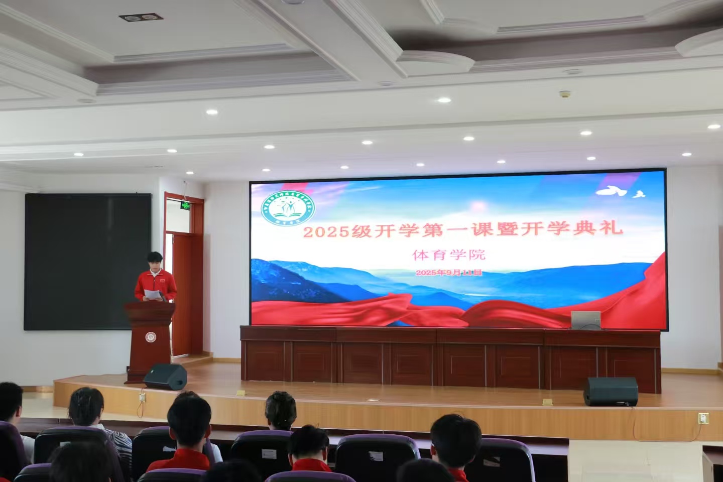 9月11日下午,体育学院2025级开学第一课暨开学典礼在庄严热烈的氛围中隆重举行。全院新生齐聚一堂,以昂扬的精神面貌迎接大学新篇章的开启。体育学院直属党支部书记、院长丁丽,学院专业老师和辅导员,以及全体2025级新生参加,会议由学工负责人周剑威主持。
