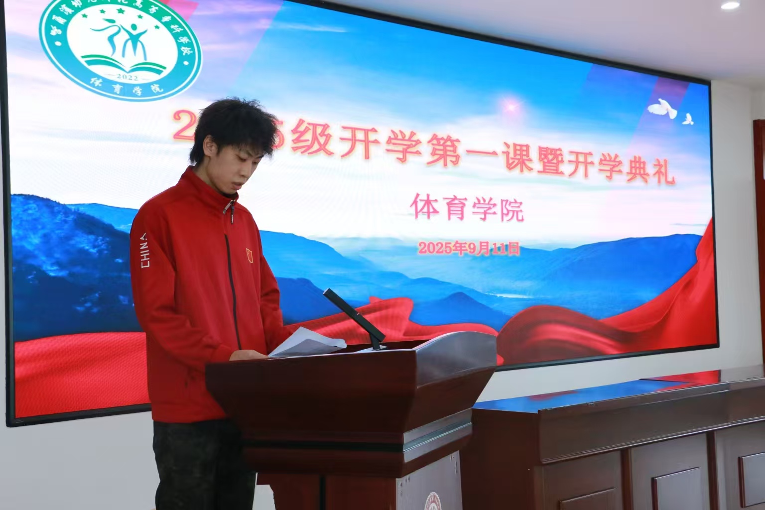 随后,2025级新生代表体育教育专业贾文宇发言,表达了对大学生活的期待与决心:“我们将以拼搏诠释体育精神,用奋斗书写青春答卷。”铿锵有力的发言道出了全体新生的心声。