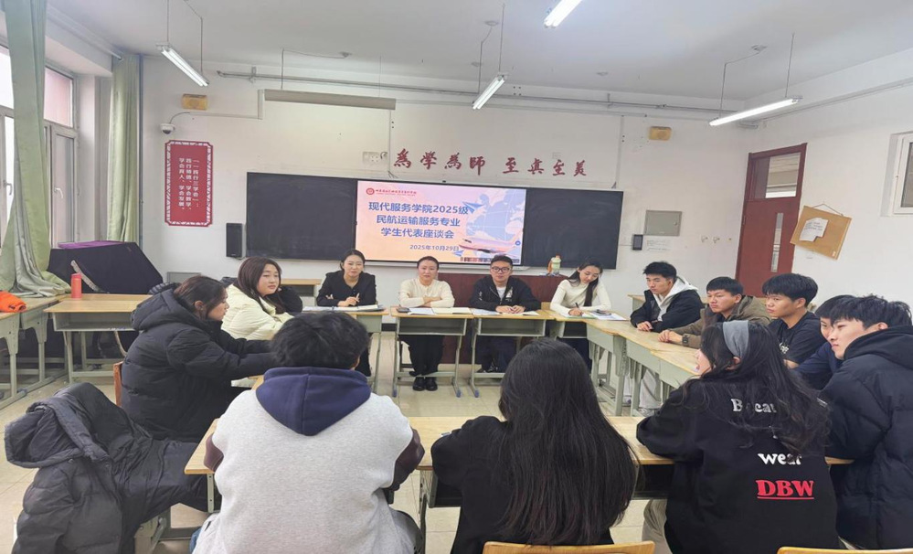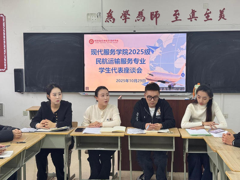 为进一步倾听学生心声,畅通师生沟通渠道,精准把握教学情况,推动教育教学质量持续提升,现代服务学院民航运输服务教研室于10月29日组织召开了2025级师生座谈会。此次会议以“聚焦教学质量,共谋发展新篇”为主题,由民航运输服务教研室主任刘倩主持,专任教师王泽华、班主任孙佳琦、姚菁菁与部分学生代表共同参会。