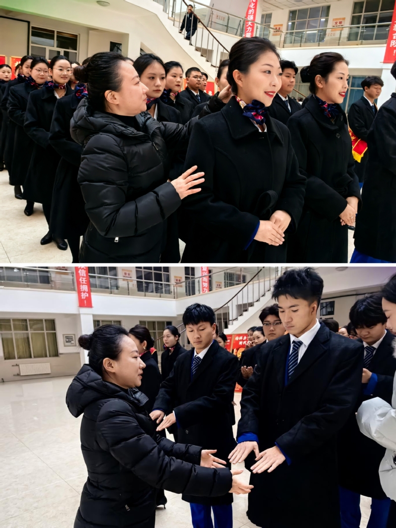 11月25日上午7时50分,2025级同学们迎来了期待已久的首个“制服日”展示。他们身着蓝色专业制服,黑色大衣搭配丝巾、领带,以干净整洁的面貌,规范严谨的专业形象整齐列队,在教学楼完成集合,大方得体的职业着装和良好的精神面貌将“外在形象”与“内在素养”深度融合,有效提升学生的职业认同、服务精神和团队意识,真正发挥校园文化的力量,让同学们切身体会到专业的力量与职业的魅力。