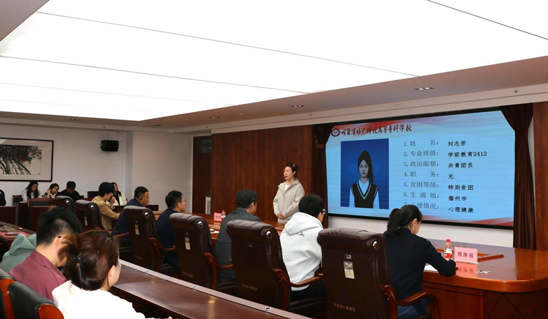 班情熟知环节聚焦辅导员对所在班级学生基础信息的掌握能力,严格围绕姓名、专业班级、政治面貌、职务、贫困等级、生源地、心理情况七大维度展开考核。比赛中,工作人员随机抽取参赛辅导员所带班级的5名学生,辅导员在限时5分钟内逐一陈述学生信息。面对随机性考验,选手们凭借日常扎实的台账管理,快速调取数据,确保每项信息准确无误。现场陈述简洁明晰,展现了辅导员队伍严谨细致的工作作风和对学生基本情况的全面掌握能力。评委组依据信息完整度、表述准确性及时间把控进行量化评分,过程高效有序,凸显以数据支撑管理的职业素养。