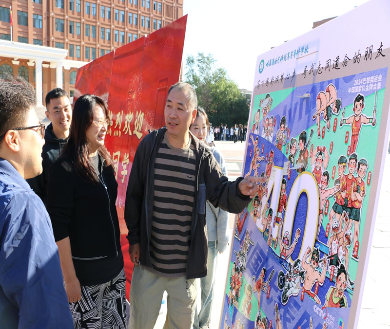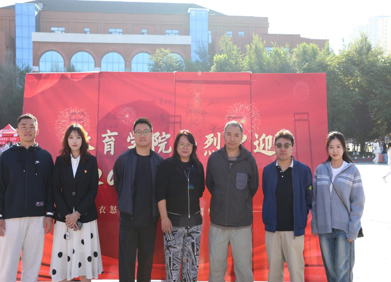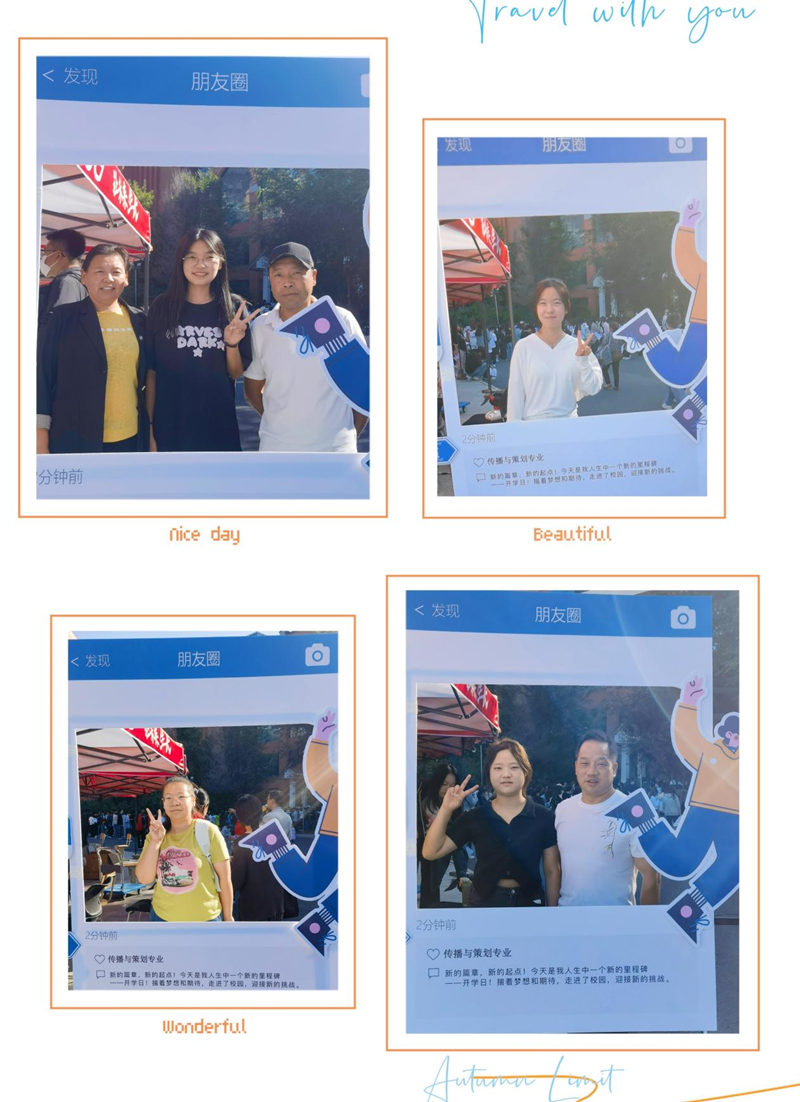 报到签名承诺板、学院风采印记集、奥运冠军表白墙等具有体育学院特色的展板设立在报到点周围,让新生在来到学校的第一天就感受到了学院浓厚的文化氛围。仿朋友圈、人形拍照打卡立牌、体育社团纳新等环节的设置更是为本次迎新活动增添了活泼时尚的靓丽色彩。