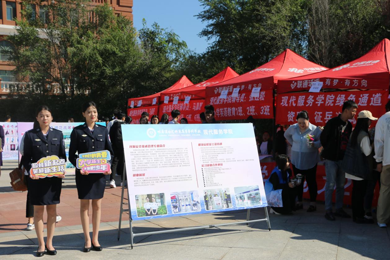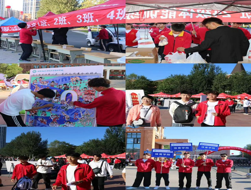 “多彩文化开启热血青春,活力竞技助力体育梦想”,体育学院在迎新展台设立了各色宣展媒介,彰显学院文体并举、职教贯融、健体育魂的办学理念及缤纷多元、团结和谐的人文气氛。