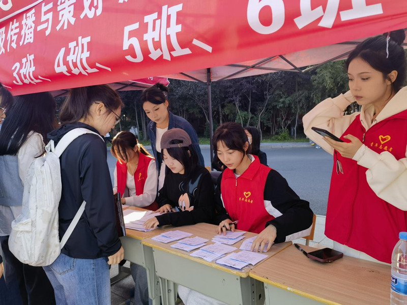 作为学校首次招收学生的学院,通识教育学院在新生报到前便依托专业特色开启了对学校的沉浸式直播宣传,让新生提前对学校情况和报道流程熟稔于心,从线上走到线下,报到现场井然有序。
