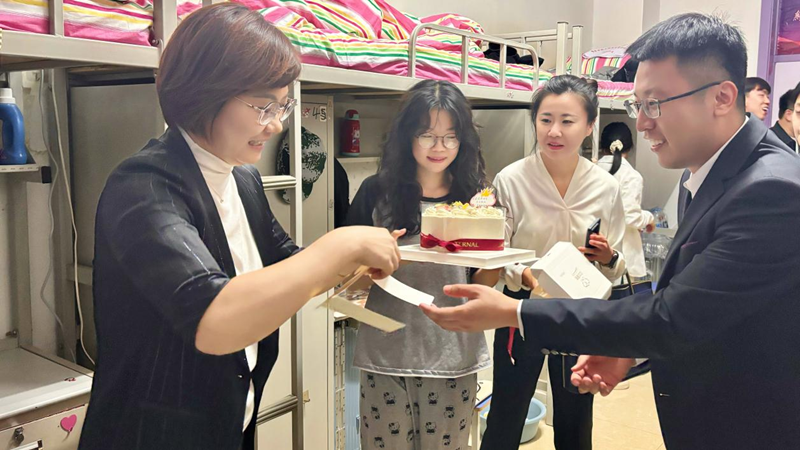 晚间,学前教育学院领导和辅导员深入学生寝室,询问他们对新环境的适应情况,鼓励他们努力学习,追求梦想。学院领导还为当天过生日的同学送去了精心准备的蛋糕和真挚的祝福。这份意外的惊喜,让初入校园的同学感受到了学院大家庭的温暖,也为他们的大学生活开启了美好的篇章。