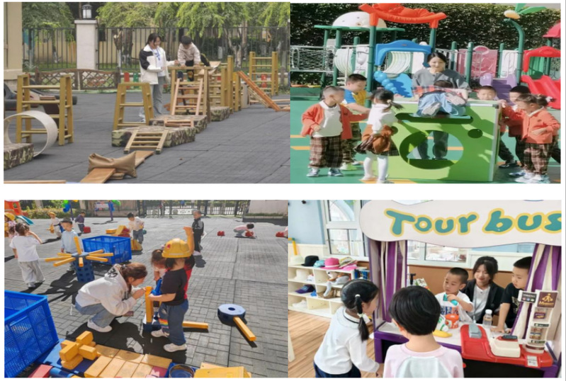 在幼儿区域游戏和户外活动中,各园见习生主动参与孩子的世界,或蹲下身倾听他们的想法,或协助教师引导游戏进程,初步体验了如何在一日生活中支持幼儿的主动学习和情感发展。许多同学表示,真正走进孩子、理解孩子,才体会到理论中所说的“尊重个体差异”“相信儿童力量”的真实含义。
