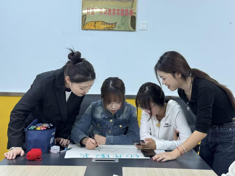 创作完成后,各组依次上台,一人展示手绘成品,另一人同步讲解设计理念与搭配思路。展示过程中,其他小组积极参与点评,从色彩适配、场景贴合度等角度提出改进建议,各组结合建议进一步完善作品。