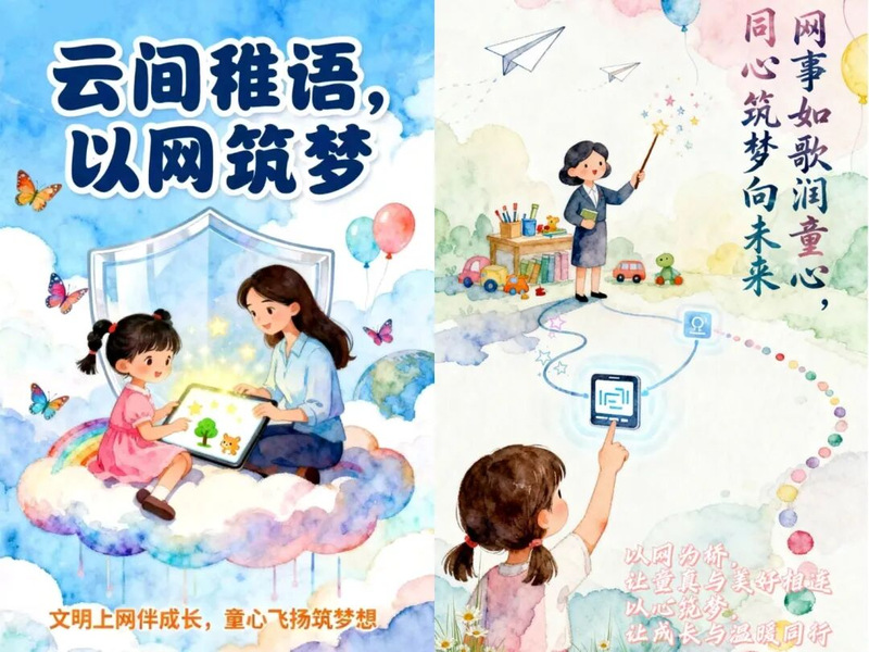 11月16日,学前教育学院网宣中心发起的“网事如歌,童心筑梦”AI海报与绘本故事双赛道创作比赛正式启动。活动面向学院24级、25级全体学生,以“人工智能+教育”为核心方向,吸引了众多同学踊跃参与——大家围绕“定格网络美好、诠释童心教育”的主题深耕创作,在近三周的作品打磨与激烈角逐中,涌现出一批兼具数字创意、艺术表达与教育温度的优质作品。