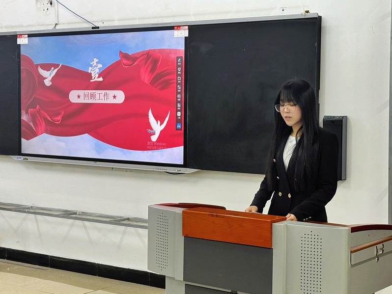 会议伊始,网宣中心主任刘雪冰同学作本学期工作总结报告。总结梳理了一学期来网宣中心在思想引领、品牌塑造、活动传播等方面的核心成果:从学院重大活动的即时追踪到原创精品内容的深度打磨,从校园风貌的生动定格到学前精神的鲜活传递,每一份成果的背后,都是全体网宣人以专业为基、以热爱为翼的并肩坚守,更是团队用文字铸魂、用镜头聚力的责任担当。