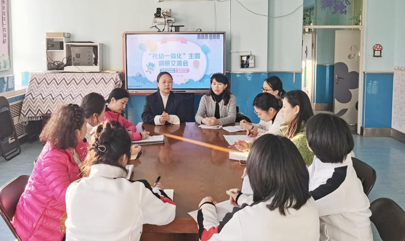 调研组一行在肖心畅园长的陪同下,实地察看了幼儿园的教学环境、托班设施、活动场地等,详细了解了幼儿园在托幼一体化方面的实践探索与阶段性成果。双方围绕黑龙江省托幼一体化发展过程中政府监管机制、课程体系构建、教师队伍建设、家园社协同育人等核心议题展开深入研讨,交流经验做法,剖析现实困境,共谋突破路径。